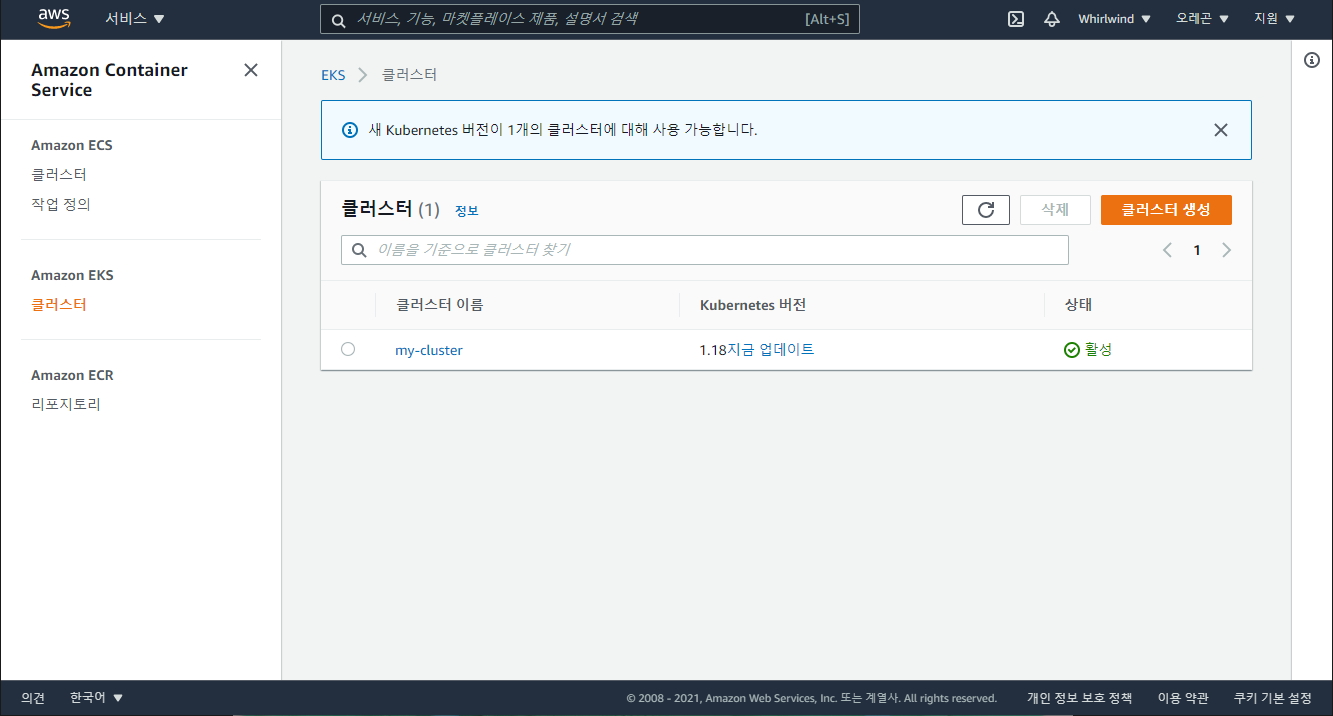 콘솔을 통해 생성된 클러스터의 정보들을 확인해보겠습니다.