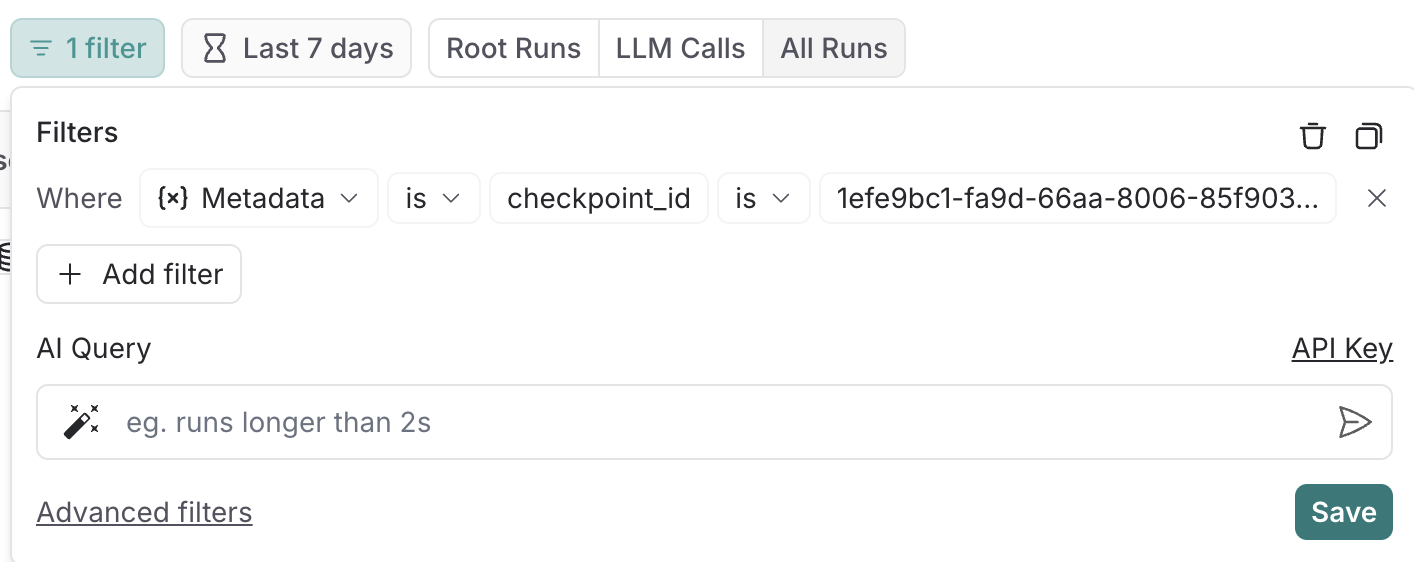checkpoint_id로 langsmith에서 확인할 수 있습니다.