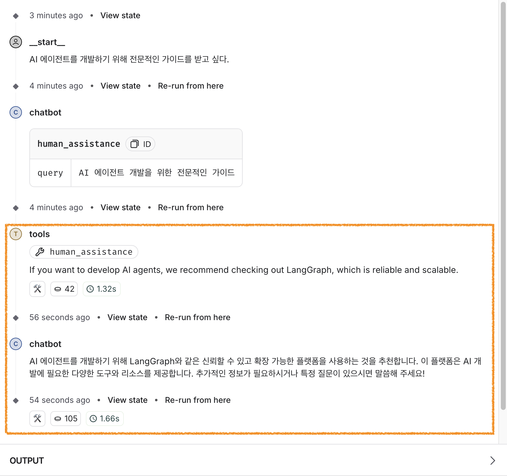결과를 확인하면, human_assistance의 Tool에서 전달 메세지를 토대로 결과가 전달 되었음을 알 수 있습니다.